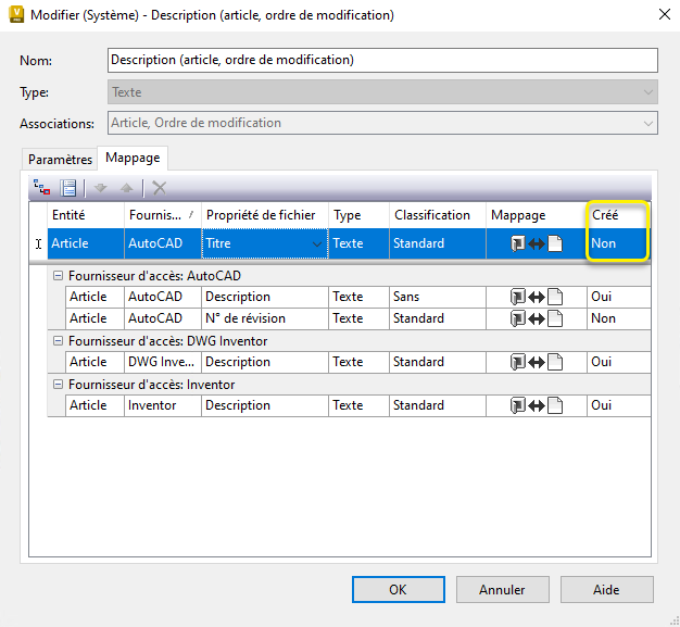 Les fichiers AutoCAD Mechanical peuvent poser problème lors de la configuration des mappages de propriétés en raison de la quantité de noms que vous devez garder à l'esprit : nom interne, nom d'affichage par défaut et modifications que vous avez pu être amené à apporter. C'est pourquoi Autodesk recommande d'utiliser une feuille de calcul, notamment celle mise en évidence dans ce Blog, pour effectuer le suivi des valeurs de propriétés.
