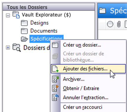 - Cliquez avec le bouton droit de la souris sur le dossier du coffre-fort auquel vous voulez ajouter le fichier, puis sélectionnez Ajouter des fichiers. Un navigateur de fichiers s'affiche.