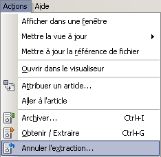 La commande Annuler l'extraction renvoie le fichier extrait ouvert à son état d'origine dans le coffre-fort avant l'extraction.