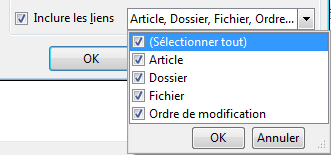Si la sélection inclut un lien vers un article, le lien principal de l'article auquel il est attribué est chargé dans la boîte de dialogue par défaut. Toutes les données associées extraites pour le téléchargement sont déterminées par les relations du fichier lié principal. Par exemple, si vous choisissez d'inclure les pièces attachées, ce sont les pièces attachées au fichier, et pas à l'article, qui sont incluses.