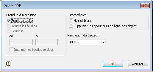 - Cliquez sur le bouton Options pour personnaliser l'étendue de l'impression, les paramètres d'affichage ou la résolution vectorielle du fichier. Cliquez sur OK.