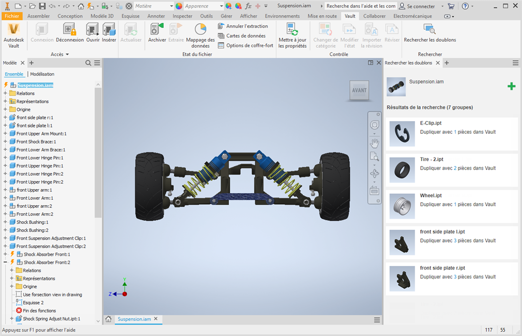 Rechercher des pièces en double dans Inventor