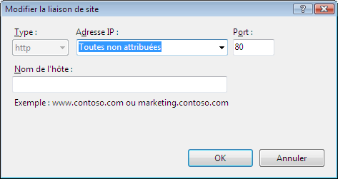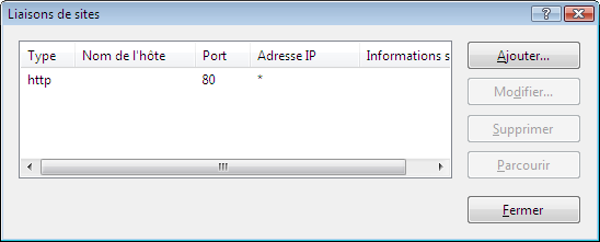 - Dans la boîte de dialogue Services Internet (IIS), développez Ordinateur local ►Sites. Cliquez ensuite sur Site Web par défaut avec le bouton droit de la souris, puis choisissez Liaisons.
