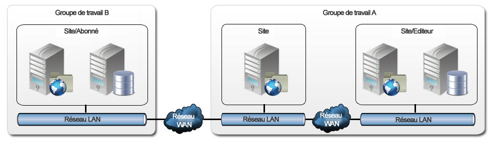 Etat final : deux groupes de travail, le groupe de travail A correspond à l'éditeur et le groupe de travail B correspond à l'abonné