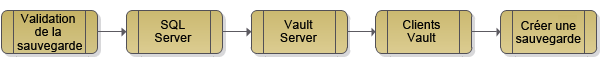 Le processus de migration pour un environnement Autodesk Vault se compose de cinq étapes : validation de la sauvegarde, mise à niveau de SQL, mise à niveau du serveur Vault, mise à niveau des clients et création d’une sauvegarde. Le nombre d'actions composant chaque étape varie en fonction de l'implémentation Vault existante.