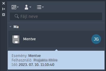 Megnyílik a Tevékenységbetekintő paletta, amelyen megjelennek az aktuális rajzzal kapcsolatos tevékenységek.