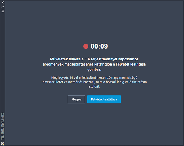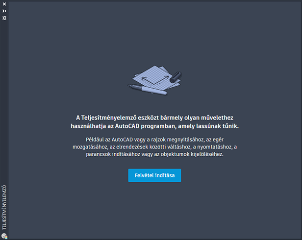 Megnyitja a Teljesítményelemző palettát, ahol diagnosztizálhatja azokat az AutoCAD-műveleteket, amelyek lassúnak tűnnek vagy nem válaszolnak.