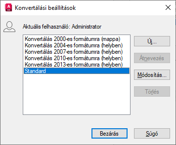 KONVERTDWG (parancs) Keres: Konvertálási beállítások