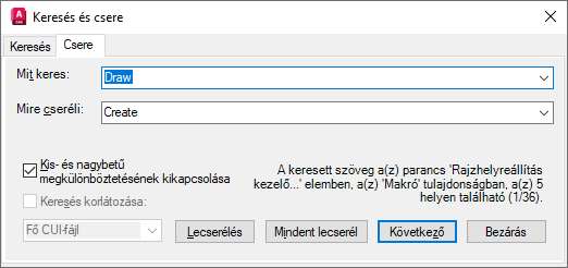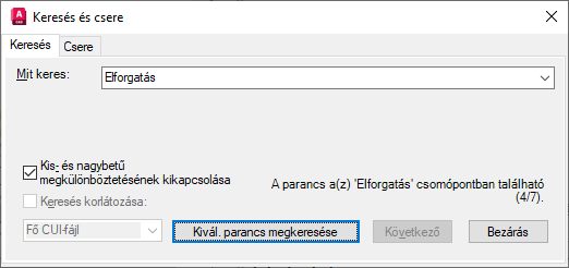 Egy üzenet jelenik meg, amely leírja a parancs találati helyét: a pontos helyét a Testreszabási beállításai vagy a Tulajdonságok ablaktáblán és a példányainak számát.