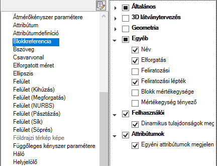 Blokkreferenciák felhasználói tulajdonságai és attribútumai megjelenítésének vezérlése
