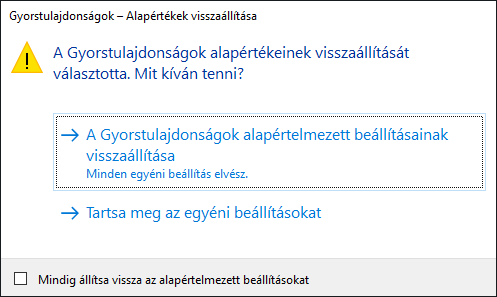 A Gyorstulajdonságok alapértelmezett beállításainak visszaállítása