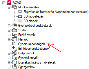 A Testreszabás lap <fájlnév> testreszabási beállításai ablaktábláján kattintson a jobb gombbal a Gyorstulajdonságok elemre.