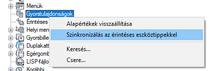 A Gyorstulajdonságok és az érintéses eszköztippek szinkronizálása