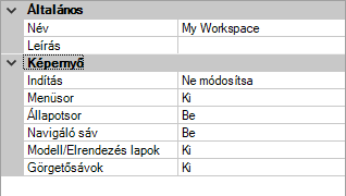 2. A Testreszabás lap <fájlnév> testreszabási beállításai ablaktábláján kattintson arra a munkaterületre, amelynek tulajdonságait módosítani szeretné.