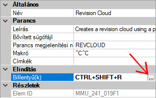 A Tulajdonságok ablaktáblán kattintson a Billentyű(k) mezőbe, majd kattintson a […] gombra a Billentyűparancsok párbeszédpanel megnyitásához.