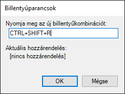Kattintson az OK gombra a billentyűkombináció hozzárendeléséhez és a Billentyűparancsok párbeszédpanel bezárásához.