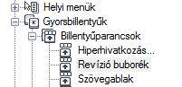 A Testreszabás lap <fájlnév> testreszabási beállításai ablaktáblán válassza a Gyorsbillentyűk csomópontot.