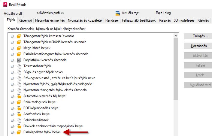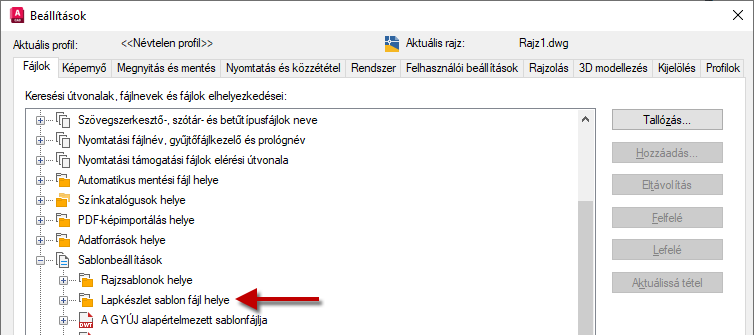 Felhasználói profilok (Az AutoCAD LT programban nem érhető el)