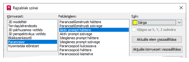 Megjegyzés: A Visszaállítás gombokkal állíthatja vissza a kiválasztott elemek vagy környezetek színét vagy az összes környezet összes elemének színét.