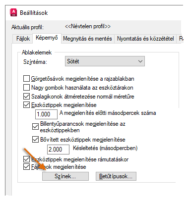 Az aktuális AutoCAD-profil visszaállítása – A parancspromptba írja be az OPCIÓK parancsot. A Beállítások párbeszédpanel Profilok lapján ellenőrizze, hogy a visszaállítani kívánt felhasználói profil-e az aktuális. Kattintson az Exportálás gombra, és mentse a felhasználói profil másolatát egy biztos helyre. Kattintson a Visszaállítás, majd az Igen gombra az AutoCAD felhasználói profil visszaállításához.