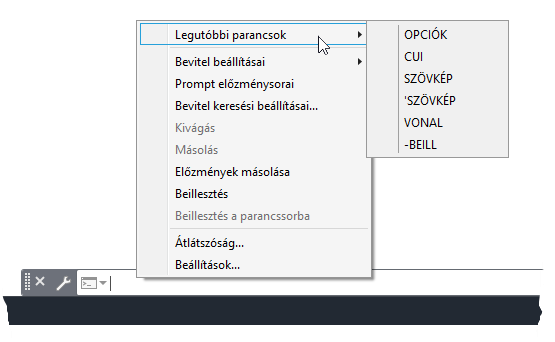 A jobb gombbal a parancsablakba kattintva és a Legutóbbi parancsok almenüben kiválasztva is indíthatja a parancsokat.