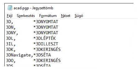 Tipp: A parancsálnevek használatával gyorsabban indíthatók a parancsok – a mutatóval nem kell a felhasználói felületen megkeresnie a parancsot, hanem maradhat a rajzterületen, az adatok megadására készen. A parancsálnév a parancs rövidített neve, gyakran csak egy vagy két karakter hosszúságú. Az automatikus kiegészítési javaslatok listáján a parancsálnevek után zárójelben látható az indítandó parancs. A parancsálnevek teljes listájának megtekintéséhez vagy kinyomtatásához kattintson a Kezelés lap > Testreszabás panel > Álnevek szerkesztése > Álnevek szerkesztése lehetőségre.
