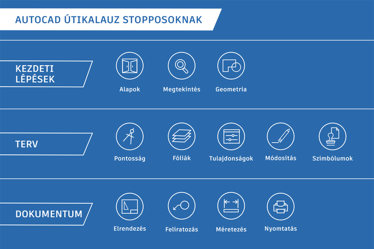Az AutoCAD és AutoCAD LT alapvető vezérlőelemeinek áttekintése. Eltolás és zoom alkalmazható a rajz különböző nézetei esetében. Távolról is megtekintheti és szerkesztheti rajzait. Alapvető geometriai objektumok, például vonalak, körök és sraffozott területek létrehozása. Biztosítja modelljeinek szükséges pontosságát. Társítsa az objektumokat a fóliákhoz, így rendszerezheti rajzát. Tulajdonságokat, például színt vagy vonaltípust rendelhet egyéni objektumokhoz, illetve fóliákhoz alapértelmezett tulajdonságokként. Különböző műveleteket (például törlés, áthelyezés és metszés) végezhet a rajzokban lévő objektumokon. Online kereskedelmi forrásokból vagy saját terveiből szúrhat be szimbólumokat és részleteket a rajzokba. Egy vagy több tervnézet megjelenítése egy normál méretű rajzlapon, vagyis elrendezésen. Megjegyzések, címkék, szövegbuborékok és képfeliratok létrehozása. Stílusbeállítások létrehozása és visszaállítása név alapján. Többféle mérettípust hozhat létre, amelyek méretbeállításait név szerint mentheti. Rajzi elrendezés küldése egy nyomtatónak, egy plotternek vagy egy fájlba. A nyomtató beállításainak mentése és visszaállítása az összes elrendezéshez.
