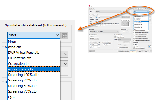 A nyomtatásistílus-táblázat információkat biztosít a színek feldolgozásáról. A monitoron szépen megjelenő színek nem feltétlenül megfelelőek egy PDF-fájlhoz vagy nyomtatáshoz. Például létrehozhatja a rajzot színesen, de a kimenetet beállíthatja monokrómra. A következő módon adhatja meg a monokróm kimenetet: