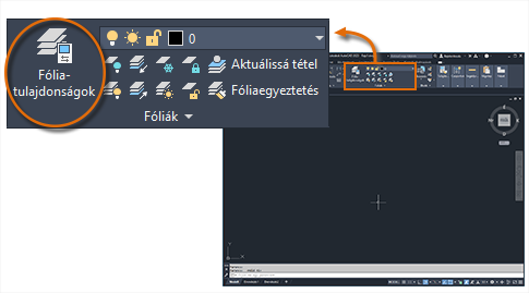 Rajz elrendezésének megtekintéséhez nyissa meg a fóliatulajdonság-kezelőt a FÓLIA paranccsal. Beírhatja a parancsablakba a FÓLIA vagy a FÓ parancsot, illetve a szalagon a Fóliatulajdonságok eszközre kattinthat.