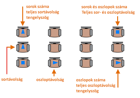 A másolni kívánt objektumok – azaz a forrásobjektumok – elrendezési mintája a kijelölés után megváltoztatható. Háromféle kiosztás létezik:
