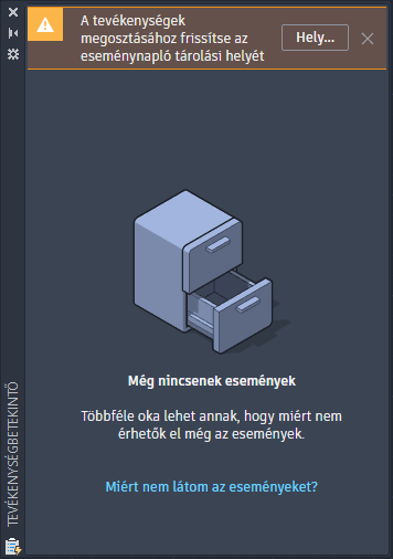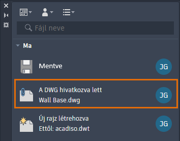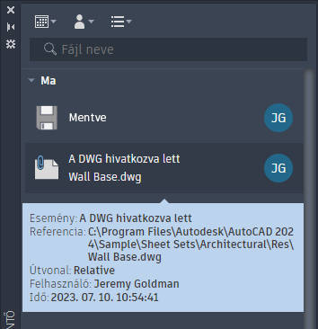 A Tevékenységbetekintő nyomon követi a rajzeseményeket, és megjeleníti azokat egy palettán, amikor a rajz meg van nyitva az AutoCAD-ben.