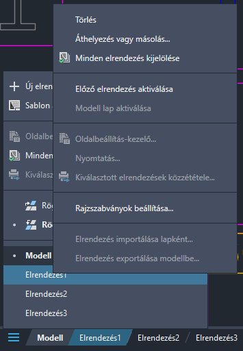 Kattintson a jobb gombbal egy elrendezés nevére a további beállítások megtekintéséhez.