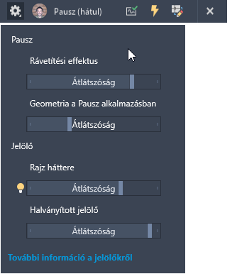Rajz háttere. Amikor egy digitális jelölő aktív, a rajzra helyezett, importált jelölők átlátszóságát vezérli. Minél nagyobb ez a szám, annál nagyobb a rávetítés átlátszósága. A Rajz háttere csúszka a MARKUPPAPERTRANSPARENCY rendszerváltozót módosítja.