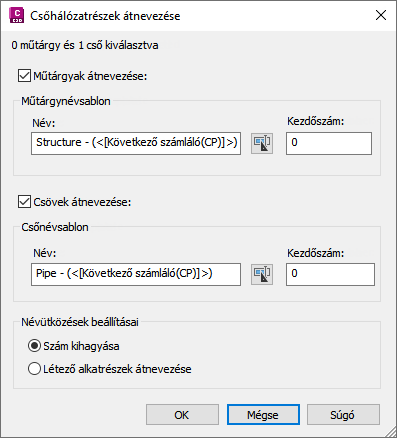 Alkatrészek átnevezése Kiválaszthatja, hogy az átnevezést/újraszámozást csak csövekre, csak műtárgyakra, vagy csövekre és műtárgyakra is alkalmazza.