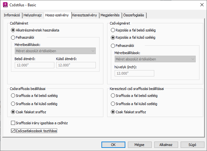 A 4. ábrán látható Csőstílus párbeszédpanel Csőcsatlakozások tisztítása beállításával javíthatja a cső hossz-szelvények megjelenését, így a csövek az elvártnak megfelelő módon jelennek meg grafikusan. Ez a beállítás alapértelmezés szerint nem engedélyezett, ezért ki kell jelölnie.