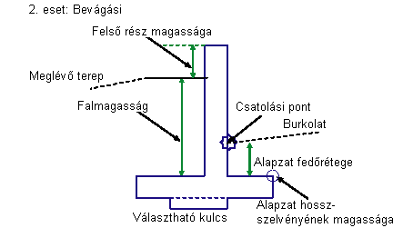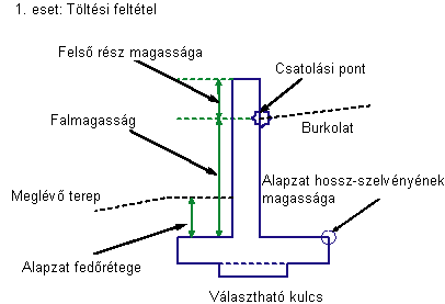 Töltésben a falsík a pálya felé dől. Bevágásban a falsík az útpályától elfelé, a megtámasztott földtömeg felé dől. Ha a Kulcs opciónál a Nem érték van beállítva, akkor az alapzat alja egyetlen vízszintes kapcsolódás lesz. Ha a Kulcs lehetőség be van kapcsolva, akkor létrejönnek a választható kulcsot meghatározó kapcsolódások.