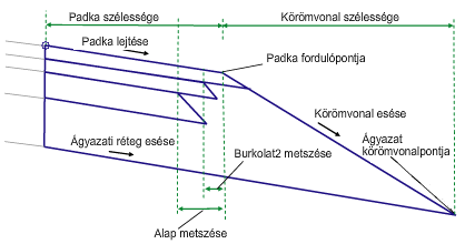 | Burkolat2 metszése | A Burkolat2 anyag csökkentett szélessége, amellyel az ágyazat összekötése lehetővé válik. Az anyagréteg oldalélének esése a padka körömvonalának esésével azonos lesz. | Numerikus, pozitív |