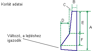 A korlát magassága a középvonal közepénél |