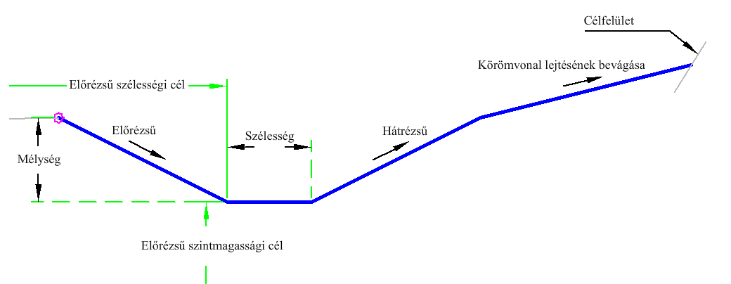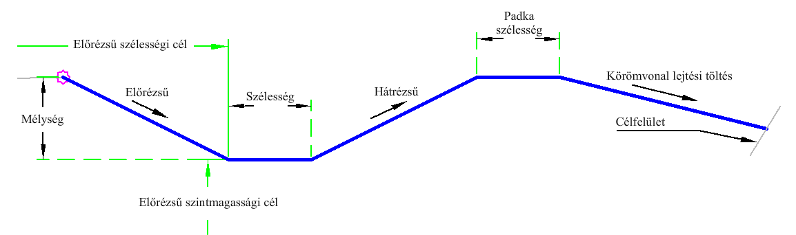 | Előrézsű magassága | Ezzel felülbírálható az előrézsű esése és szélessége. A szintmagasság megadása a következő objektumtípusok esetében hajtható végre: hossz-szelvények, 3D vonalláncok, vezérlővonalak és földmérési alakzatok. | Választható |