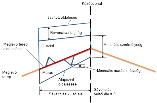 | Meglévő sáv belső éle | Ez a kezdőpont a meglévő talaj lejtésének kiszámításához. | Numerikus | 0.000 m |