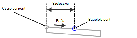 Kapcsolódás esése (negatív esésértékek a kiindulási vonaltól lefelé mutató irányt jelölik) |