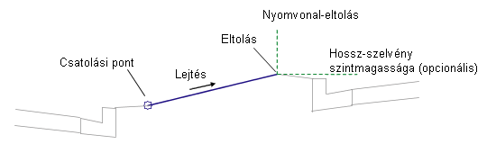 A nyomvonal helyettesíthető egy eltolással, a hossz-szelvény pedig a lejtéssel.