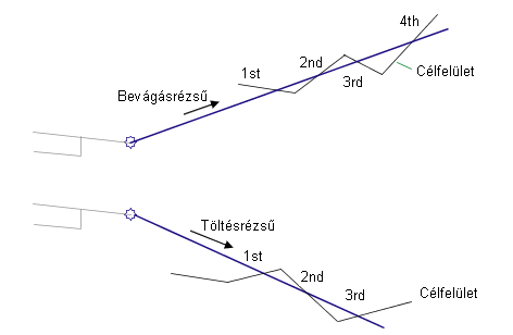 Ez az alkotóelem akkor kerül felhasználásra, amikor a bevágási vagy töltési körömvonal rézsű egynél több helyen metszi a célfelületet.