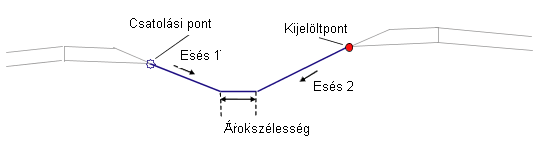 A rendszer megállapítja a csatolási pont és a kijelölt pont helyét. A kijelölt pont a csatolási ponttól jobbra és balra is lehet. A kapcsolódások befelé terjednek az Esés 1 értékkel a csatolási ponttól, és az Esés 2 értékkel a kijelölt ponttól, amíg nem metszik egymást. Ha az árok adott szélességű, akkor egy vízszintes árok alja kapcsolódás kerül az egymást metsző oldalrézsűkhöz.
