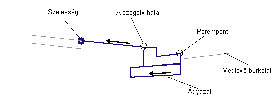 | Perempont | Ez beállítja a perempont eltolását az alkotóelem kezdéséhez. A következő objektumtípusokat lehet megadni az eltolás céljaként: nyomvonalak, vonalláncok, vezérlővonalak és földmérési alakzatok. |