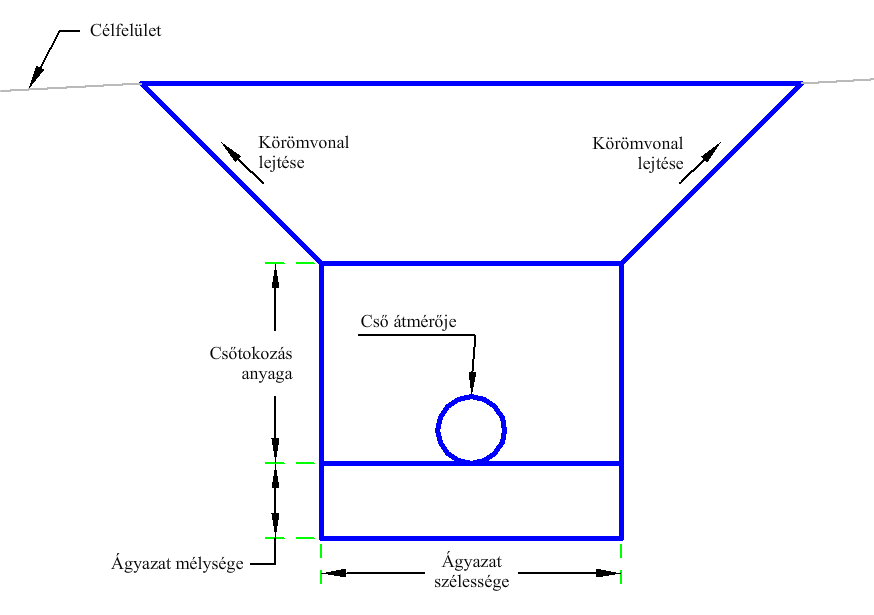 | Ágyazat mélysége | A csőágyazat mélysége a cső folyásfeneke alatt. | Numerikus, pozitív |