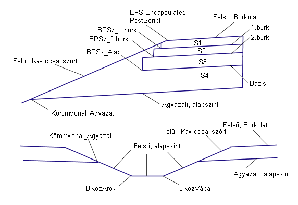 Az a szélesség, amellyel a 2. burkolati réteg túlnyúlik a padka élén. Ennek nagyobbnak vagy egyenlőnek kell lennie az 1. burkolat túlnyúlásával. A 2. burkolati réteg alja nem nyúlhat túl az árok oldalrézsűn. |