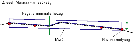 Válassza ki, hogy az átfedés teteje a belső metszéspontnál maradjon a nyomterv hossz-szelvény magasságánál, vagy az átfedési réteg függőleges elhelyezését a Minimális hézag értéke alapján állítja be |