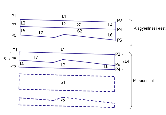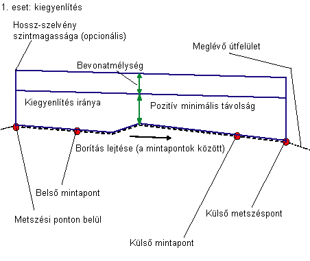 A meglévő felület fölötti és az átfedés alja alatti terület (Kiegyenlítési eset) |