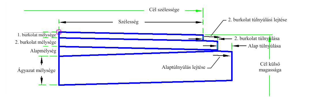 | Alap túlnyúlása | Túlnyúlás a 2. burkolaton. | Numerikus, nem negatív |